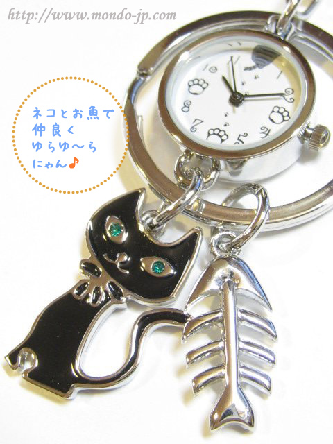 人気 キーホルダー時計 猫モチーフ ポケットウォッチ フック付き時計 キーチェーンウォッチ 黒猫 黒ネコ 魚 Ap1330 J Axisの通販 価格比較のビカム